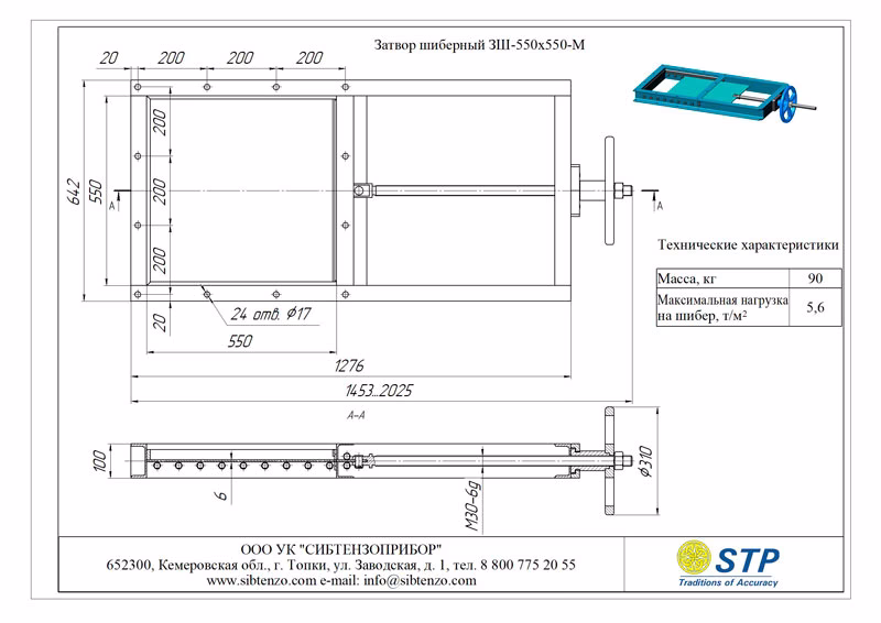 Купить затвор шиберный 3Ш-550х550-М из высокоуглеродистой стали вы можете в нашей компании «Сибтензоприбор»‎.