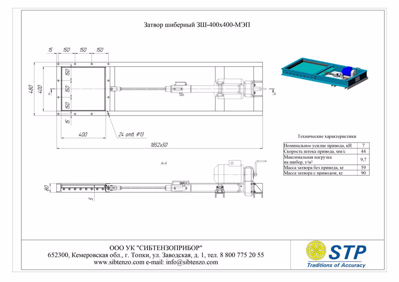 Наименование Габариты проходного окна шибера, мм Состав затвора шиберного ЗШ Масса Максимальная нагрузка на шибер, т/м2