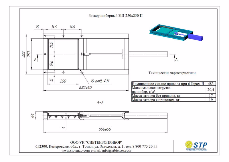 Наименование Габариты проходного окна шибера, мм Состав затвора шиберного ЗШ Масса Максимальная нагрузка на шибер, т/м2